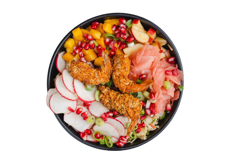 Toppings : Gingembre (mariné), oignons jeunes, grenade